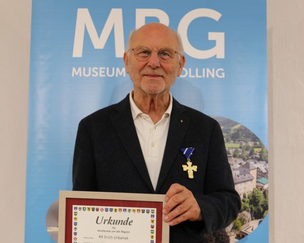 Am 08.09.2021 wurde RR Erich Urbanek, der Gründer des Museum Burg Golling und Ehrenbürger der Marktgemeinde Golling an der Salzach, von Bürgermeister Peter Harlander, Bürgermeister a.D. Anton Kaufmann und Bezirksobmann Eduard Leitner in Anwesenheit zahlreicher Gemeindevertreter/innen und nach einer von MMag. Michael Neureiter gehaltenen Laudatio mit dem »Tennengau Kreuz in Gold« ausgezeichnet. Die Ehrung mit…