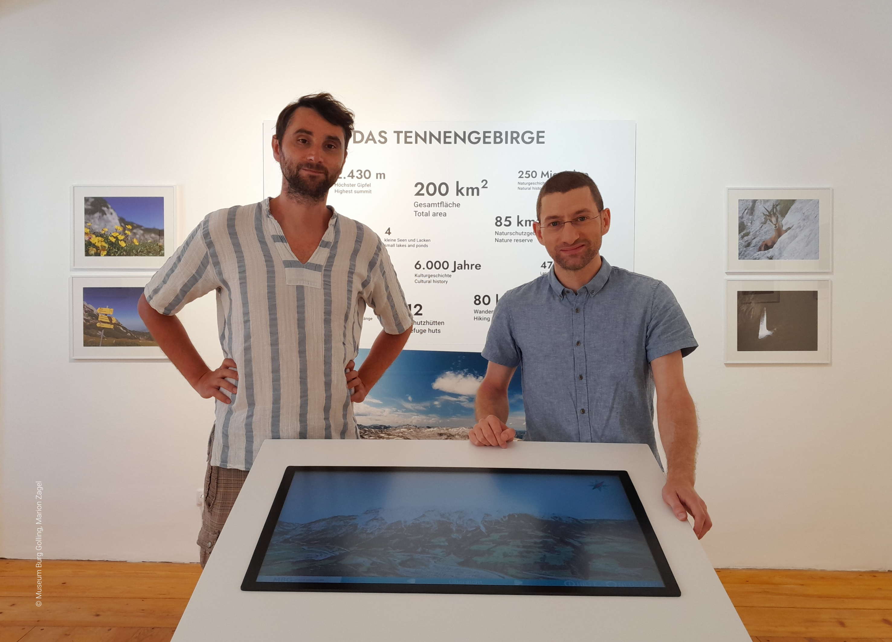 In der aktuellen Sonderausstellung »AlpenWelt Tennengebirge – Geschichte(n) eines Hochgebirges« im Museum Burg Golling können Besucher/innen das Tennengebirge jetzt erstmals auch komplett virtuell erkunden! Mit einem interaktiven, digitalen 3D-Modell können die zahlreichen Gipfel, die grünen Almen und alpine Schutzhütten des Tennengebirges ganz bequem erklommen werden. Die virtuelle »Bergtour« ist aber auch für Kenner des Tennengebirges spannend, da man abseits markierter Wan-derwege mühelos auch die entlegensten Bereiche des riesigen Hochplateaus erkunden und das Ten-nengebirge aus neuen, bislang unbekannten Blickwinkeln betrachten kann.